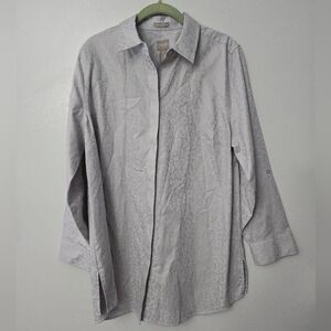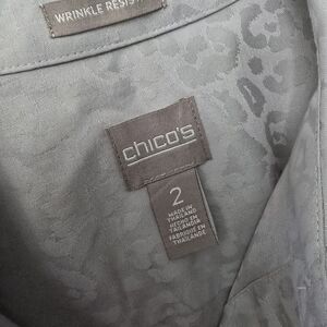Chico’s 2 US L Women’s Button Up Shirt Gray Animal Print Leopard Long Sleeve