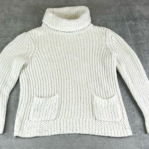 Chico's 2 Us L White Turtleneck Loose Knit Sweater Pockets Lagenlook Classic