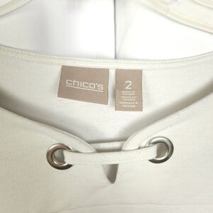 Chico's 2 Womens 12 White Hardware Detail Keyhole 3/4 Sleeve Tunic Top