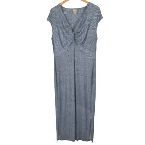 Chico's 2 Women's Blue pattern Maxi Dress Size large Rayon knit cap sleeve