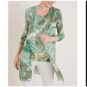 Chicos 2 Womens Large Green Paisley Open Front Cardigan Lightweight Jacket