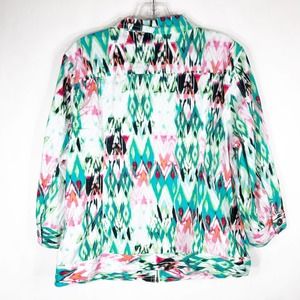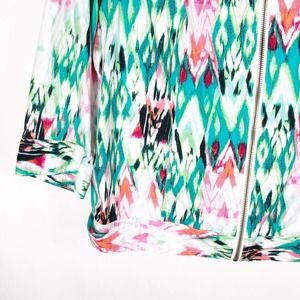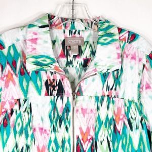 Chicos 2 Womens Large Jacket Zip Up Green Pink Vibrant Pockets Lightweight 1151
