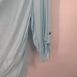 Chicos 2 Womens Light Blue V-Neck Crinkle Rayon Blouse Tunic Top Size Large