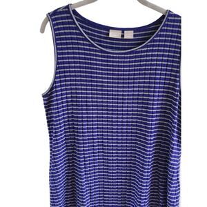 Elevate your look with this classic and comfortable Chico's sweater set - the perfect addition to your wardrobe. Available in a soft and versatile blue gray stripe. Perfect for all seasons and travel adventures.