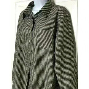 Chico's 2 shirt top button up long sleeve MOP buttons gray white stripe