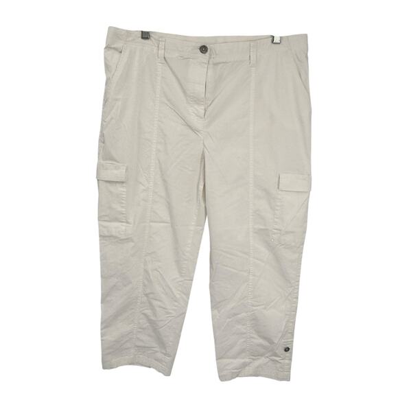 Chicos 2.5 Cargo Crop Pants size Large/14 White Stretch Cotton Resort
