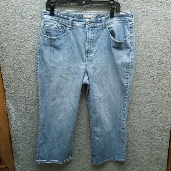 Chico's 25 Platinum Floral Marquis Blue Solid Cropped Jeans 34.5" 23.5" 12"