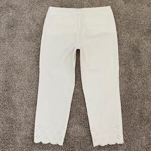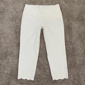 Chico's 2.5 Regular So Slimming Brigitte Scallop Hem Crop Pants White Eyelet Women's 14R