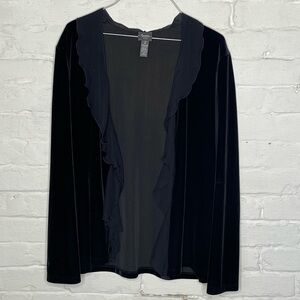 Open-front jacket with chiffon ruffle