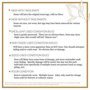 Excellent pre-owned condition. No holes, stains, pilling, or wash wear noted. Clean and ready to ship.
