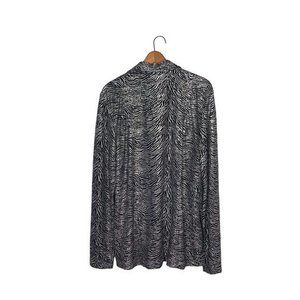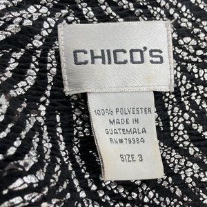 Chico's 3 Black Silver Textured Stretch Zebra Moto Zip Front Jacket XL 16 18
