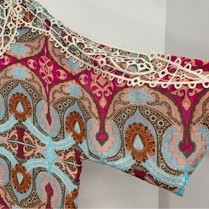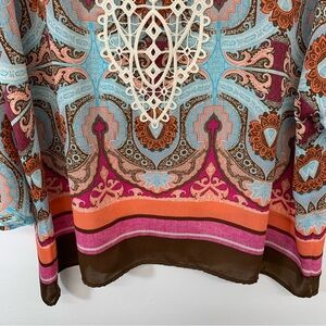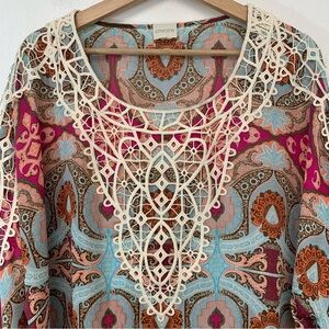 Chicos 3 Blouse XL/16 Crochet Lace Artsy Boxy Dolman Sleeve Lightweight Travel
