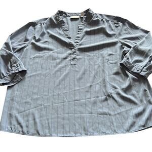 Blue polyester silky blouse pullover, 3/4 sleeves