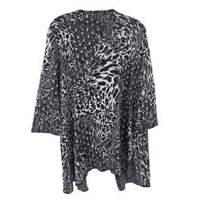 Chicos 3 Easywear Black White Leopard Print Open Front Cardigan Sweater Size XL