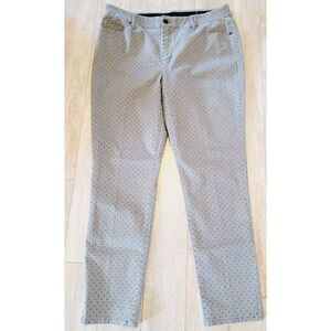 Chico's 3 Jeans Gray Black Polka Dot Taper Leg Zip Button XL Stretch 5 Pocket