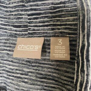 Chicos 3 Open Front Cardigan Womens Size US XL Striped Black & White Knit Lagenl
