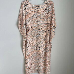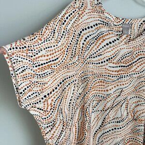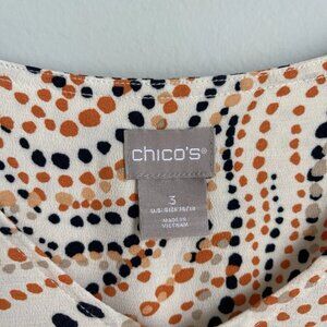 Chicos 3 Orange Black Dot Dolman Sleeve Shift Midi Dress V Neck Women's