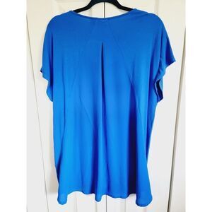 Chico's 3 Royal Blue Knit Short Sleeve Tee Top X-Large Stretch Hi-Lo Crew Neck