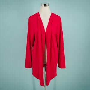 Chico's 3 Size XL Pink Cotton Slub Open Front Long Sleeve Tunic Duster Length Cotton Modal Blend Knit Cardigan Sweater NEW