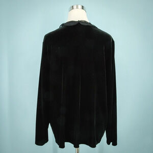 Chico's 3 Size XL Traveler's Black Velvet Ruffle Open Front Cardigan Jacket