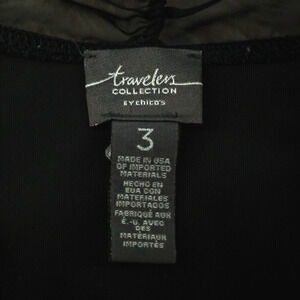 Chico's 3 Size XL Traveler's Black Velvet Chiffon Ruffle Open Front Long Sleeve No Iron Polyester Spandex Blend Knit Cardigan Sweater Jacket Topper