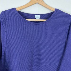 Chicos 3 Sweater Womens XL Purple Asymmetrical Hem Ribbed Knit Tunic Long Sleeve