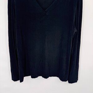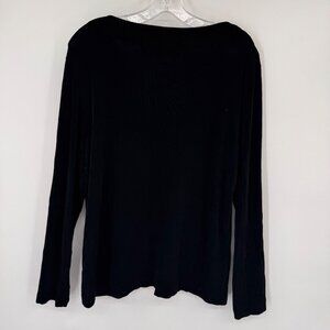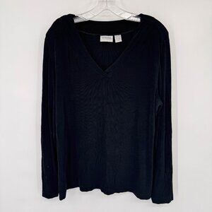 Chicos 3 Travelers Black Long Sleeve V-Neck Top Size XL Acetate Stretch USA