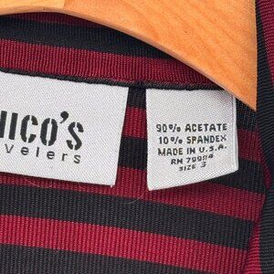 Chicos 3 Travelers Red Black Striped Zip-Up Long Sleeve jacket Top Size XL knit