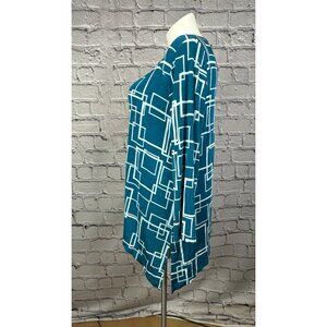 Chicos 3 Travelers XL 16/18 Blue Geometric Print 3/4 Sleeve Asymmetrical Top