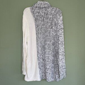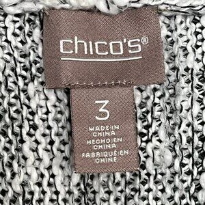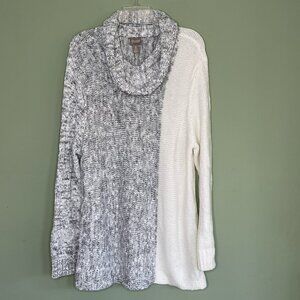 Chicos 3 Tunic Sweater XL Cowl Neck Chunky Knit Gray White Colorblock