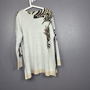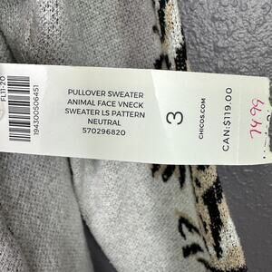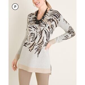 Chico's 3 US XL Tiger Animal Print Face V neck Tan Pullover Tunic Sweater NEW