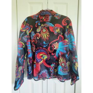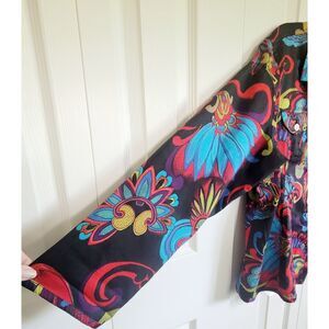 Chico's 3 Vibrant Abstract Button Front Tailored Shirt Jacket XL Cotton Blnd LS