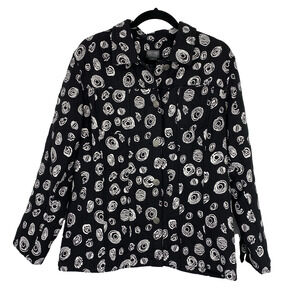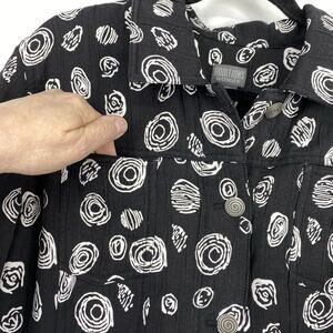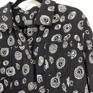 Chicos 3 Whimsical Circles Jacket Size XL Black White Silver Buttons Artsy Boxy