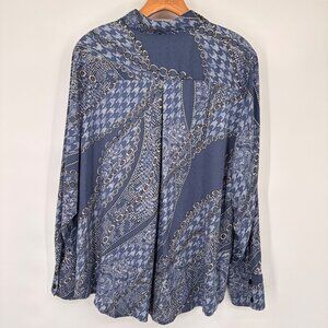 Chicos 3 Womens Button-Down Long Sleeve Shirt Size XL Blue Geometric satin