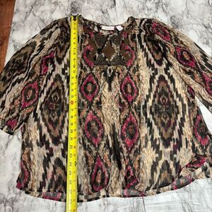 Chicos 3 Womens XL Tunic Blouse Multicolor Paisley Long Sleeve Chiffon Top beads