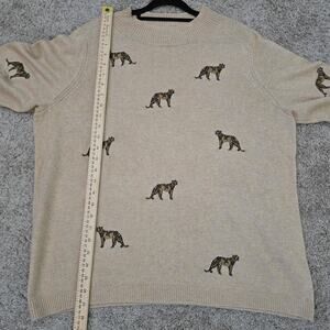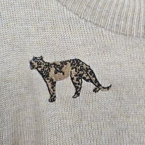 Chico’s 3 XL Beige Embroidered Cheetah Sweater Crewneck CozyLayering AnimalPrint