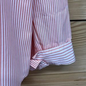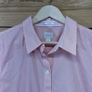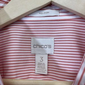 Chicos 3 XL Shirt Orange White Stripe Tie Waist Contrast Cuff Cotton B83