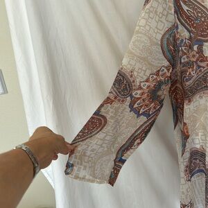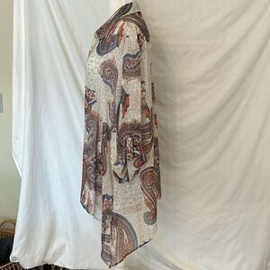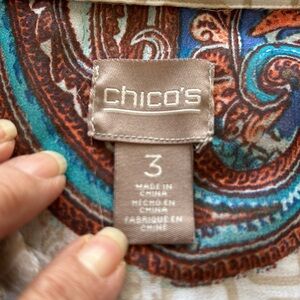 Chico’s 3/4 Sleeve Crème/Tan Paisley Print Blouse Sz 3