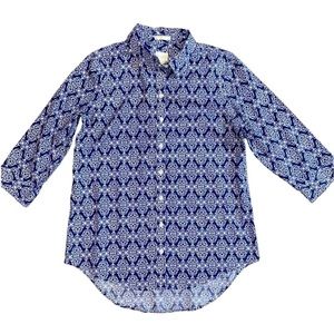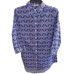 Chico's No Iron Button Down 3/4 Sleeve Damask Abstract Print Shirt Top Size XS