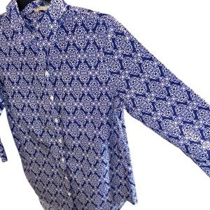 Chico's 3/4 Sleeve No Iron Button Down Front Damask Abstract Print Shirt Top