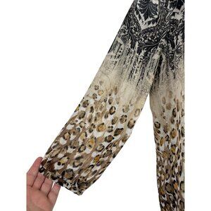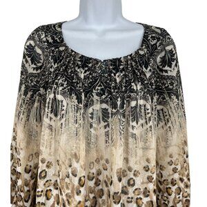Chico's 3/4 Sleeve Round Neck with Pintuck Button Detail Semi Sheer Blouse Sz M