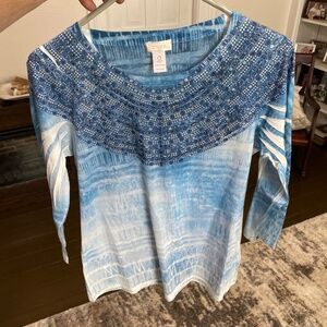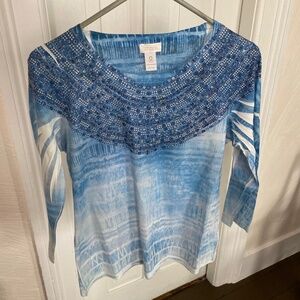 Chicos 3/4 long sleeve size 0 top shirt womens blue 100% polyester