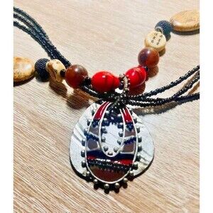 Chico's 4 Strand Boho Bold Faux Agate Cloisonne Seed Beads Pendant 21" Necklace