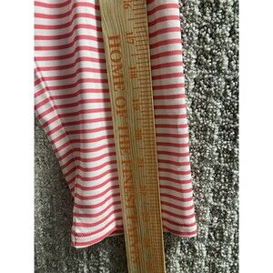 This Chico's T-shirt in size 20 is perfect for any casual occasion. The candy striped design in red and white adds a festive touch, making it a great choice for Christmas. The long sleeves and casual sleeve type provide comfort, while the pullover closure ensures easy wear. Made from a rayon blend knit fabric, this T-shirt is machine washable and easy to care for. It is also packable and breathable, making it suitable for all seasons. The round neckline and regular fit contribute to the basic style of this top, which is suitable for any wardrobe. In very good preowned condition no damage no wear (4317)