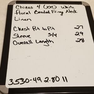 Chico's 4 (XXL) Top 100% Linen Knit Floral Tunic Beaded Fringe Beach Coastal