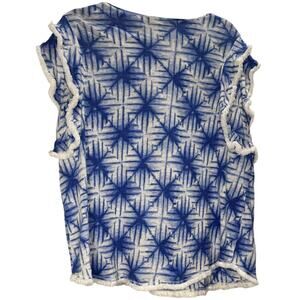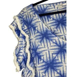 Chicos 4 XXL blue white print ruffle sleeve knit top