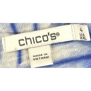 Keywords: Chicos top plus size ruffle sleeve knit tee v neck blue white geometric print casual weekend resort travel comfy