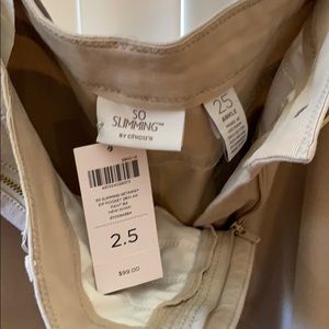 Chicos size 2.5 ankle 54% cotton 43% rayon 3% spandex are in number 79984. New with tags