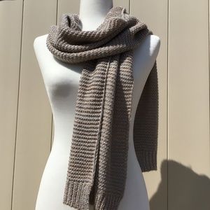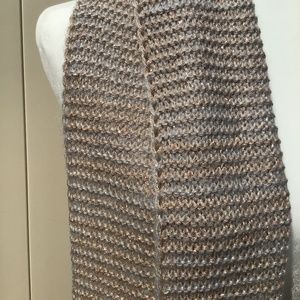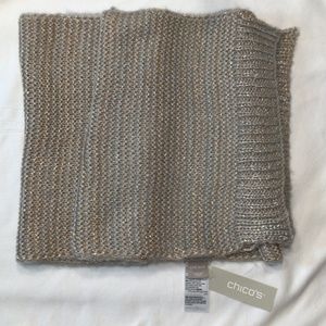 Brand new Never Worn this gold and silver Chico’s knit scarf is in perfect condition. Grey yarn with a shiny gold weave .