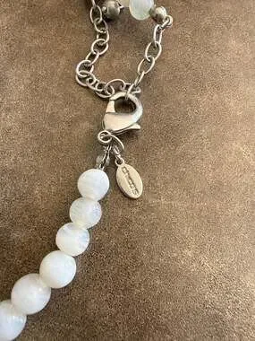 Features a lobster claw clasp with an adjustable extender chain for multiple length options. The signature Chico's metal hangtag is attached to the clasp. Perfect for adding a coastal or artisanal touch to a simple outfit.